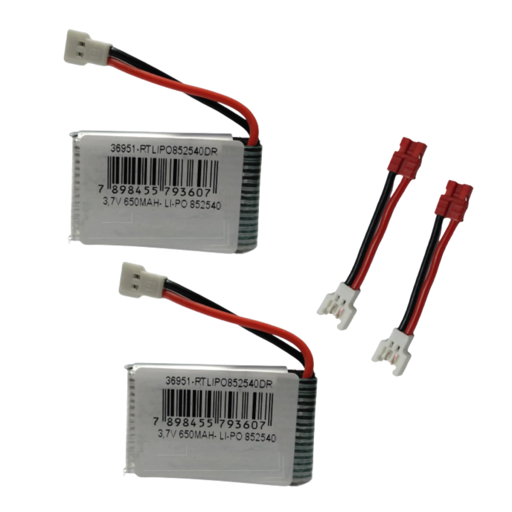 Bateria 650mAh 3.7v para drones plug Branco XH.Bateria Lipo - Li-PolimeroAmperagem 650mAhvoltagem 3,7v.Tamanho:(Expessura, Largura e Comprimento):9x26x43Ideal para drones, fones de ouvido e outros aparelhos com bateria de 3.7vCONTEÚDO DO PACOTE (Iden 1º foto)02- Bateria 650 mAh 3.7v - plug branco XH