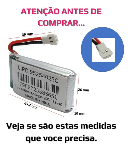 ***ANTES DE COMPRAR MEÇA O TAMANHO DO COMPARTIMENTO ONDE FICA A BATERIA DO SEU DRONE E COMPARE COM O TAMANHO DA BATERIA