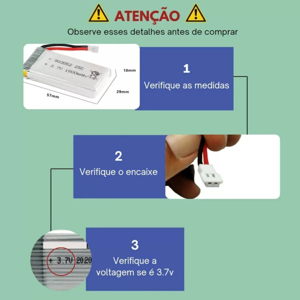 ***ANTES DE COMPRAR MEÇA O TAMANHO DO COMPARTIMENTO ONDE FICA A BATERIA DO SEU DRONE E COMPARE COM O TAMANHO DA BATERIA
