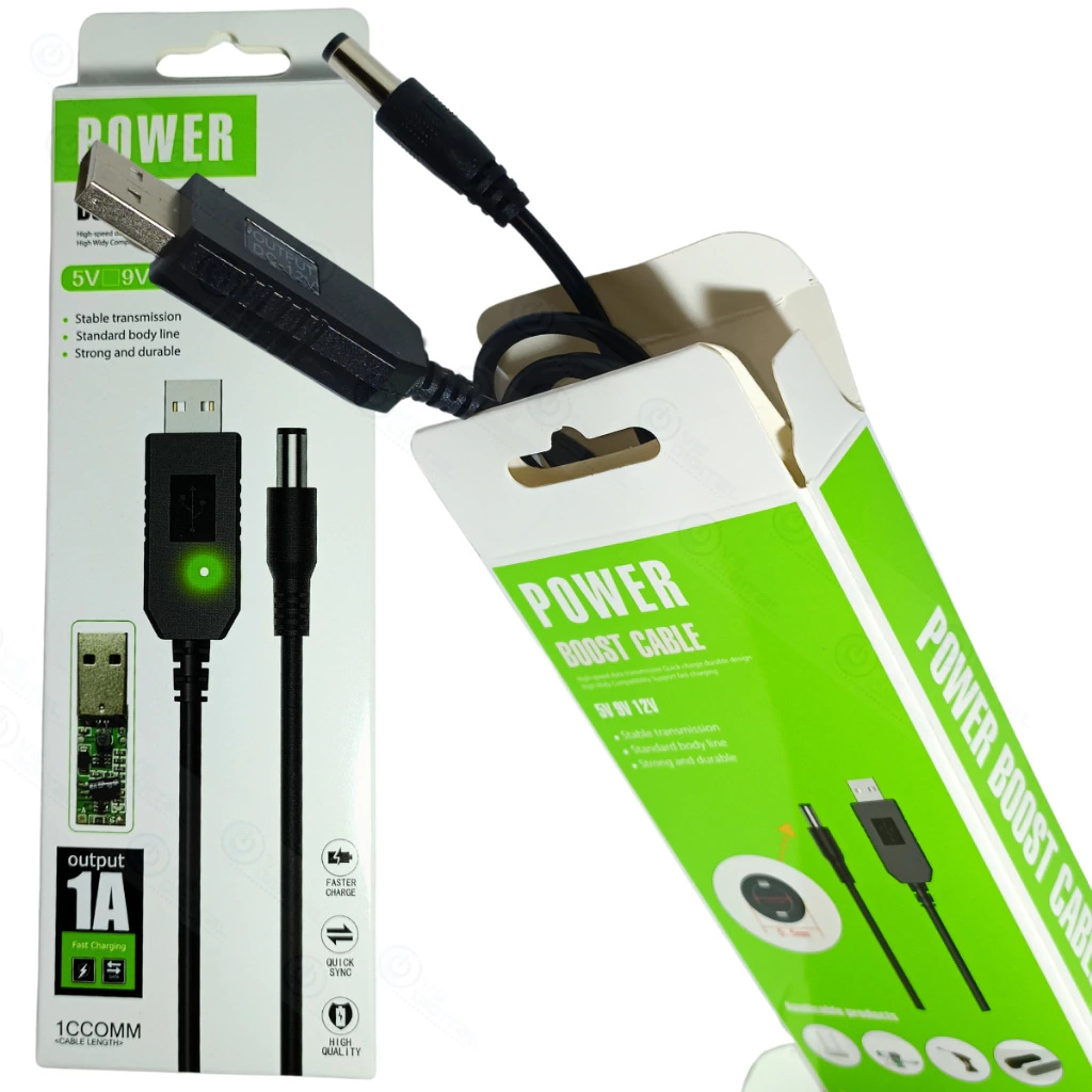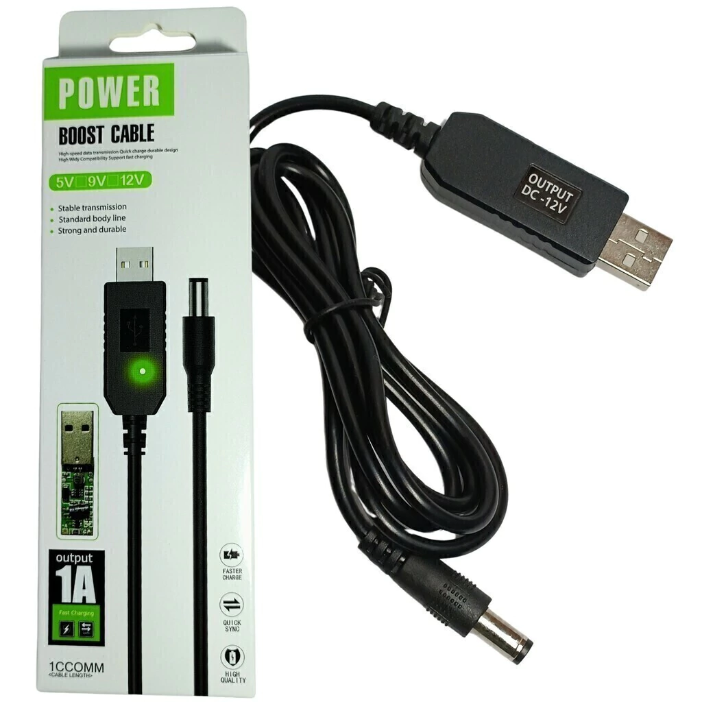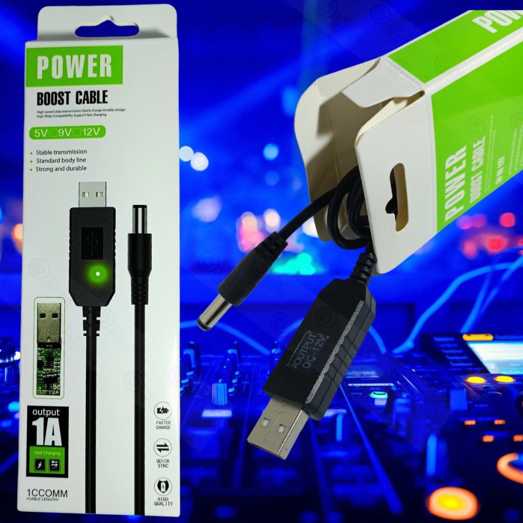 Ele tem uma tensão de entrada de 5V e uma tensão de saída de 12V, com uma corrente máxima de 700mA. O cabo tem um comprimento de 1 metro e um conector p4 de 5.5/2.1 mm.