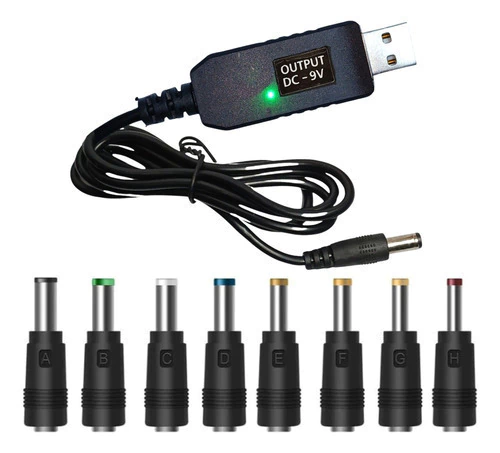 Ele tem uma tensão de entrada de 5V e uma tensão de saída de 9V, com uma corrente máxima de 700mA. O cabo tem um comprimento de 1 metro e um conector p4 de 5.5/2.1 mm.