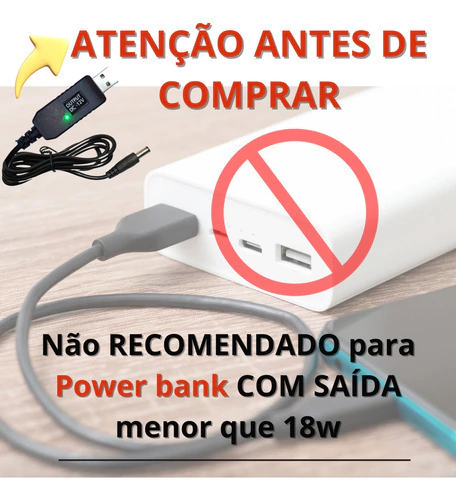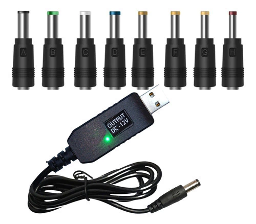 Ele tem uma tensão de entrada de 5V e uma tensão de saída de 12V, com uma corrente máxima de 700mA. O cabo tem um comprimento de 1 metro e um conector p4 de 5.5/2.1 mm.