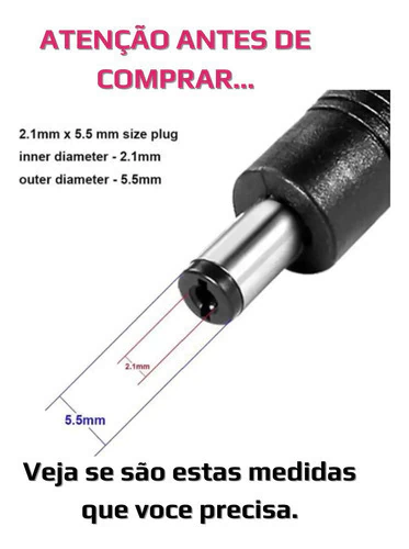 - Tensão de saída: 12V plugue p4 5.5/2.1 mm