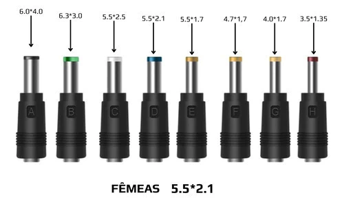 - Entrada: 2.1 x 5.5 mm - Fêmea