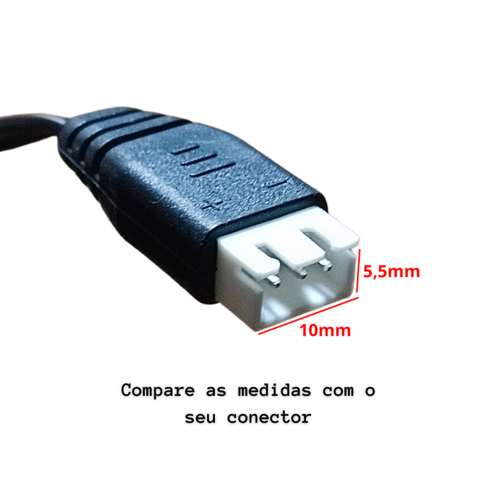 - **Conector:** 3 pinos, compatível com baterias de 3 vias