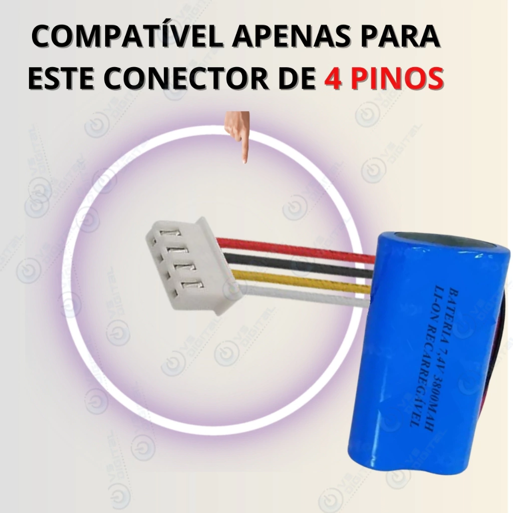 Além disso, ele tem 4 pinos, o que facilita a conexão com a bateria e evita curtos-circuitos.