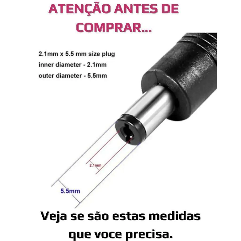- Tensão de saída: 12V plugue p4 5.5/2.1 mm