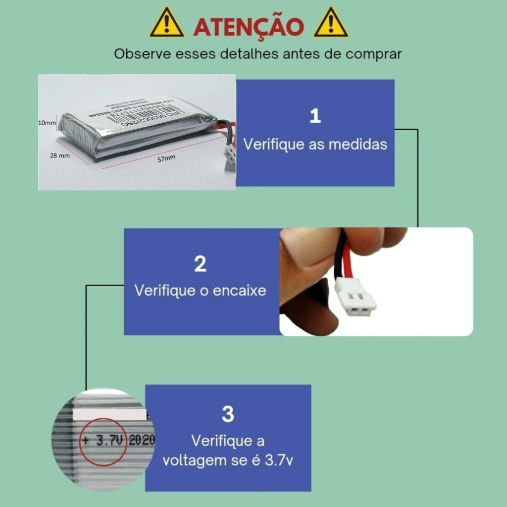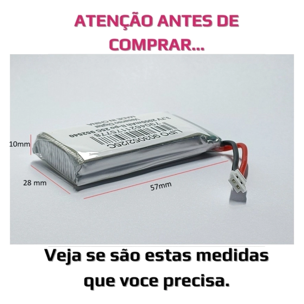 1) ANTES DE COMPRAR MEÇA O TAMANHO DO COMPARTIMENTO ONDE FICA A BATERIA DO SEU DRONE E COMPARE COM O TAMANHO DESTA DO ANÚNCIO.
