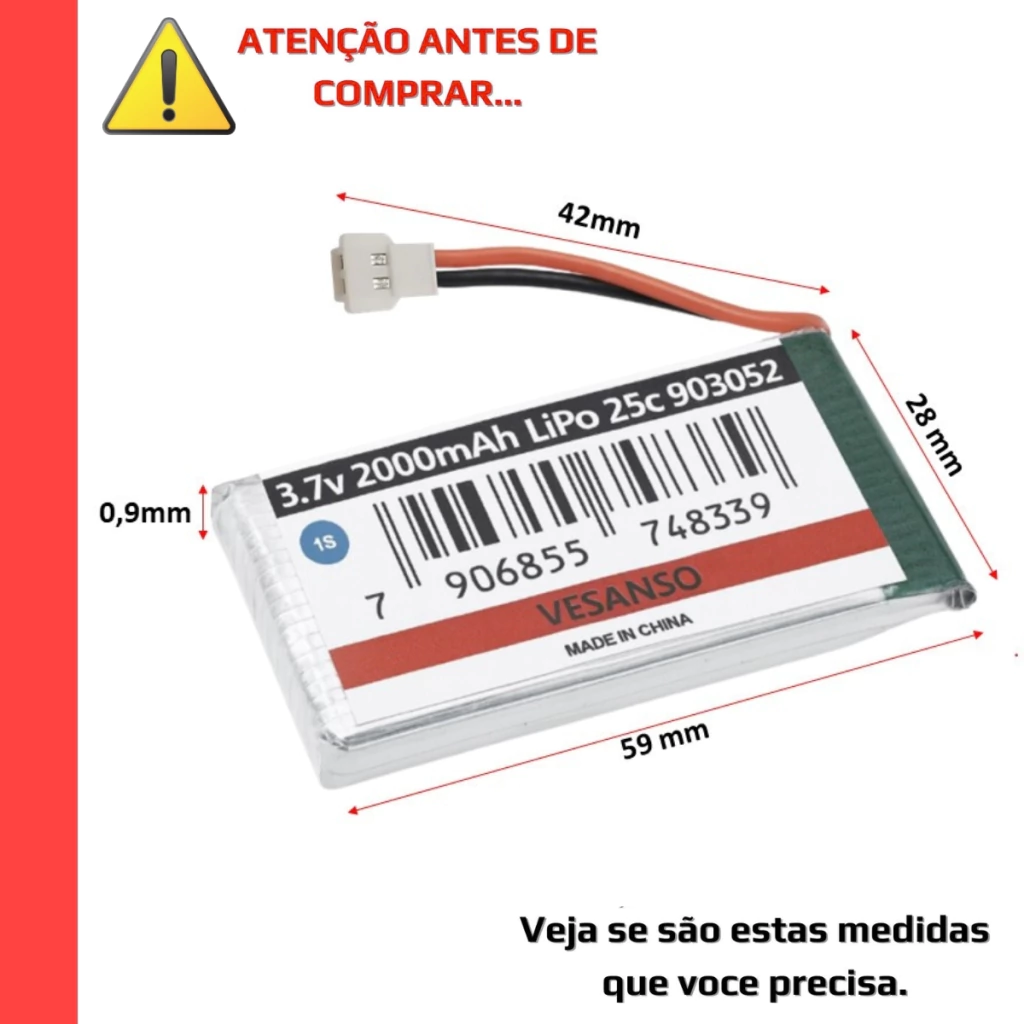 Com 2000mAh de capacidade e uma taxa de descarga de 25C, essa bateria proporciona energia constante e estável, permitindo sessões mais longas sem quedas de desempenho.