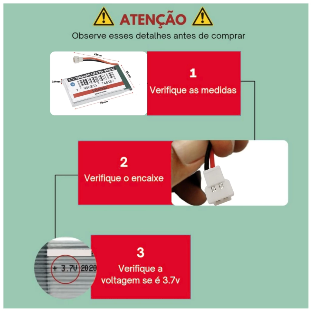 Suas dimensões reduzidas (aproximadamente 54mm x 29mm x 9mm) tornam essa bateria ideal para espaços compactos, sem comprometer a potência e a autonomia.