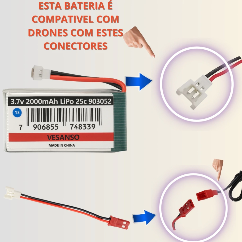 Equipada com conector branco MX 2.0, compatível com uma ampla variedade de dispositivos eletrônicos, especialmente drones de pequeno e médio porte. Verifique o tipo de conector do seu equipamento antes da compra.