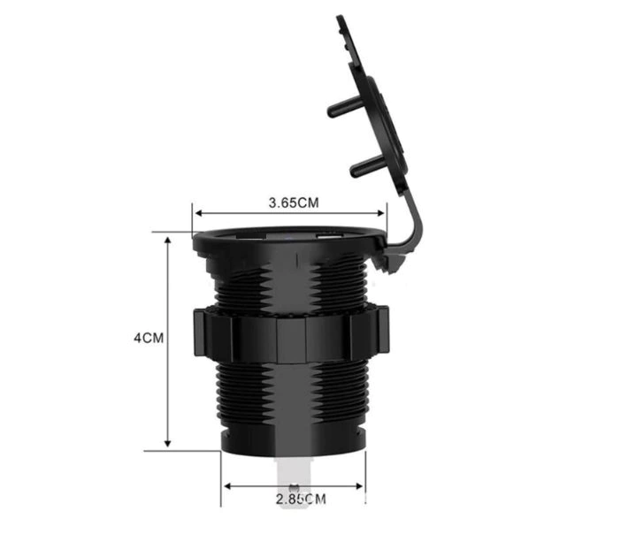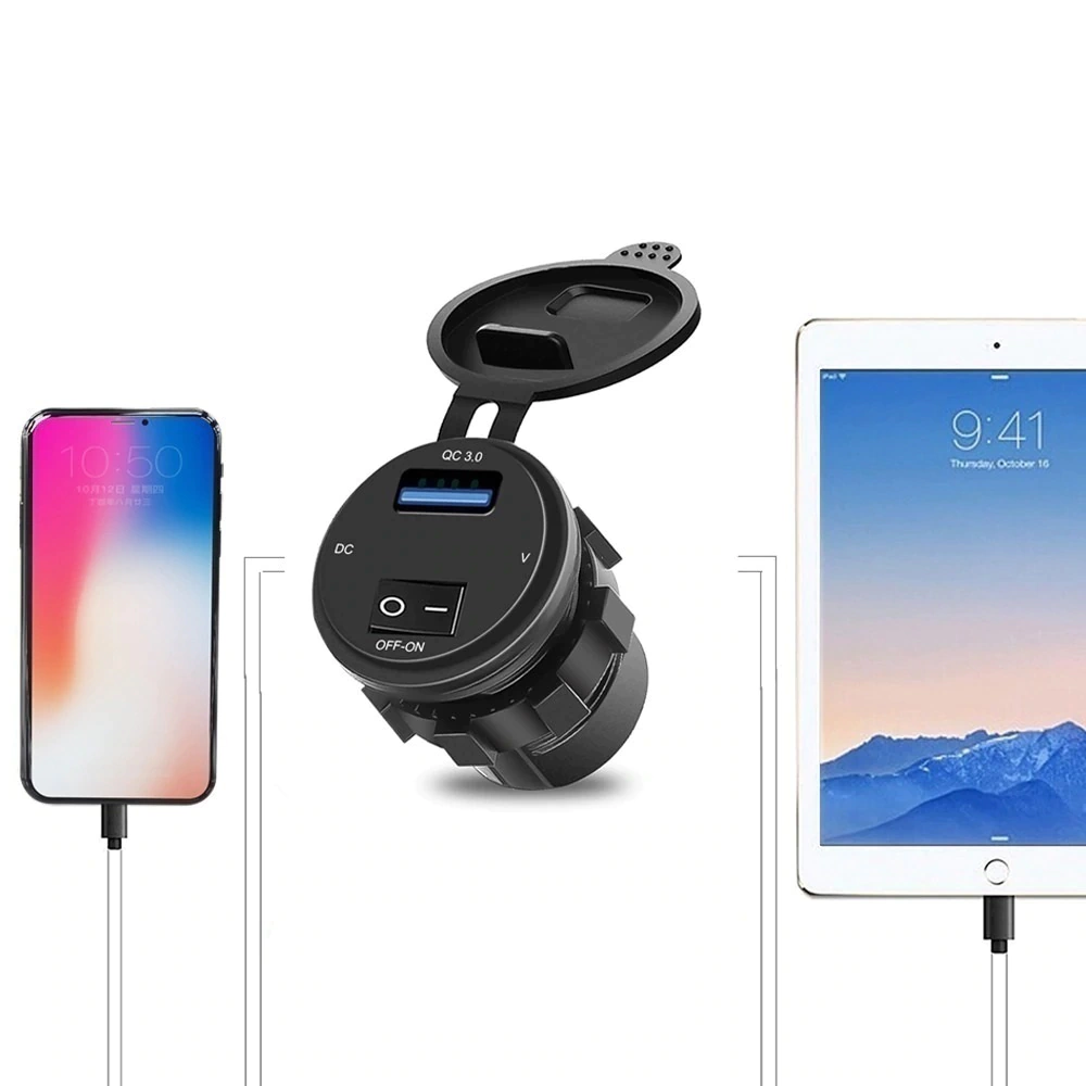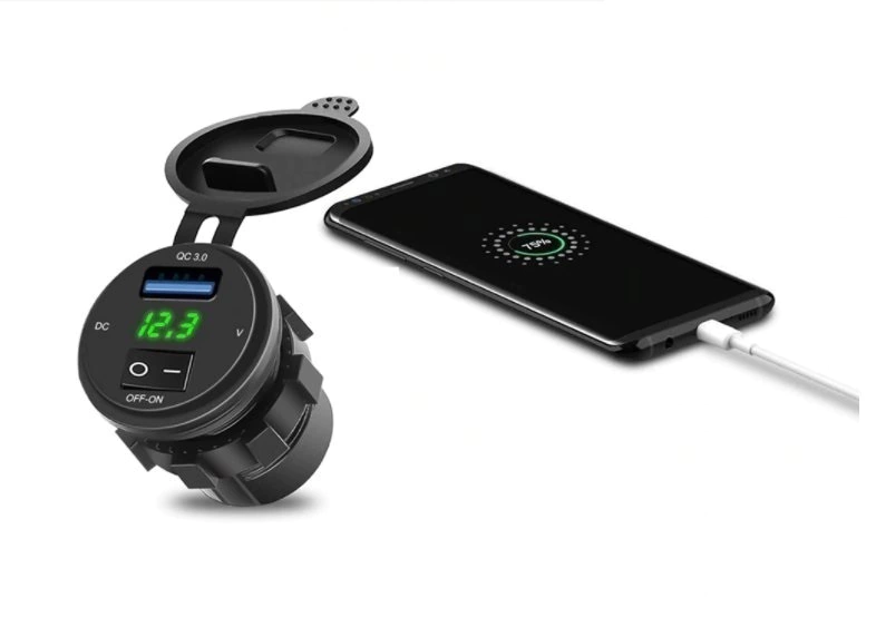 - 1 Tomada Carregador USB QC 3.0 Turbo com Voltimetro e Botão Liga/Desliga.